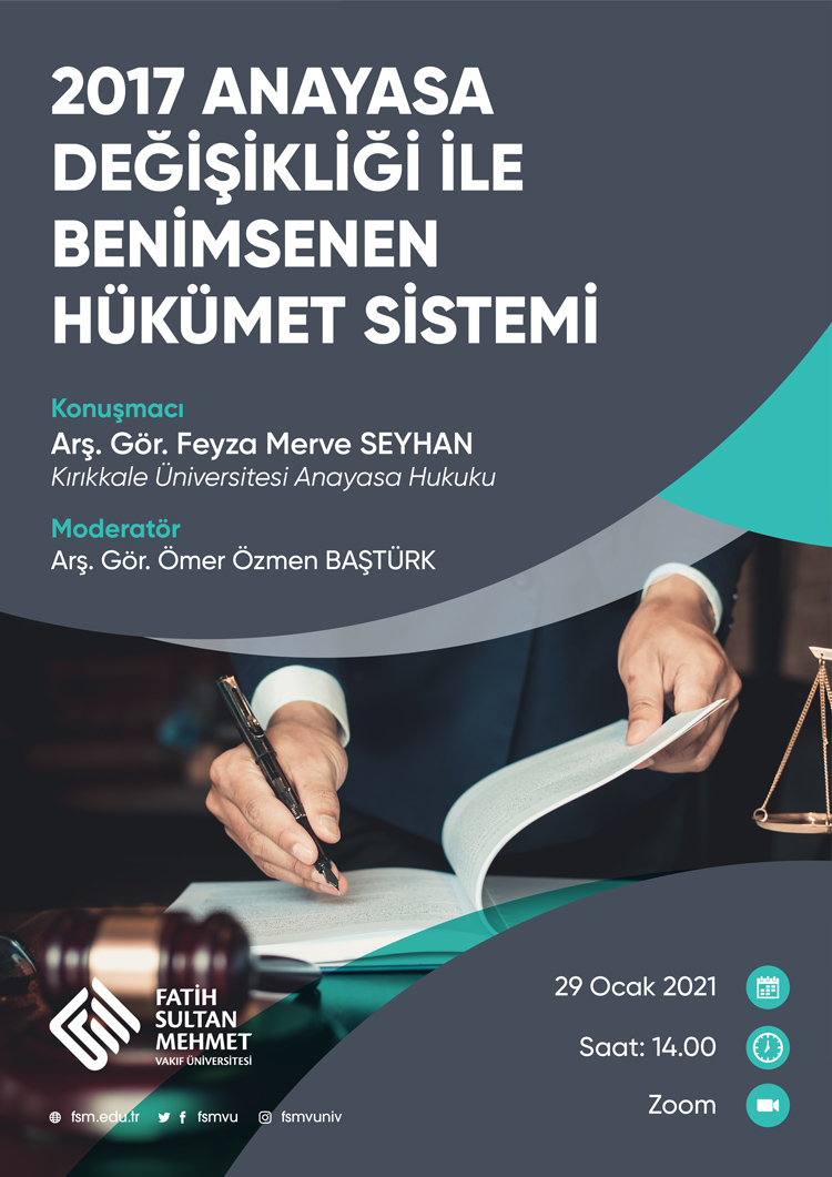 Fakültemiz tarafından düzenlenen '' 2017 Anayasa Değişikliği ile benimsenen Hükümet Sistemi " semineri Zoom Platformu üzerinden gerçekleştirilecektir.