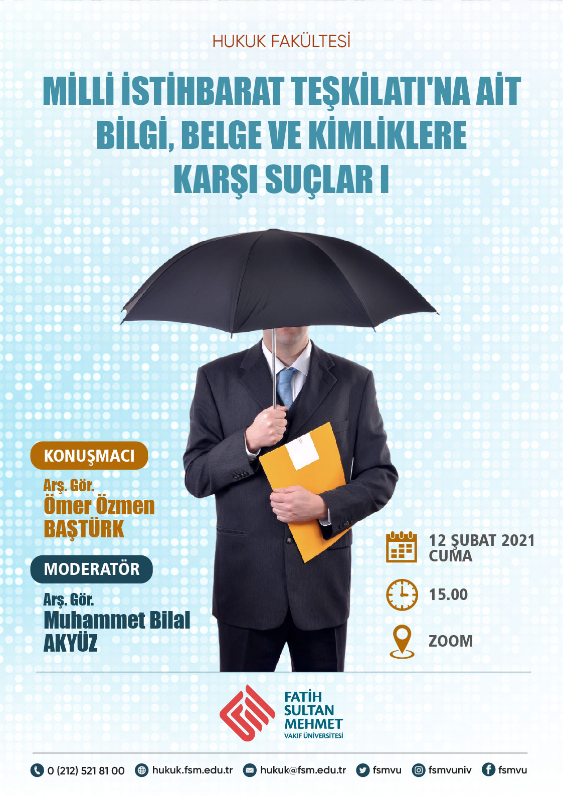 Fakültemiz tarafından düzenlenen ''Milli İstihbarat Teşkilatı'na Ait Bilgi, Belge ve Kimliklere Karşı Suçlar I " semineri Zoom Platformu üzerinden gerçekleştirilecektir. Kayıt için lütfen tıklayınız.