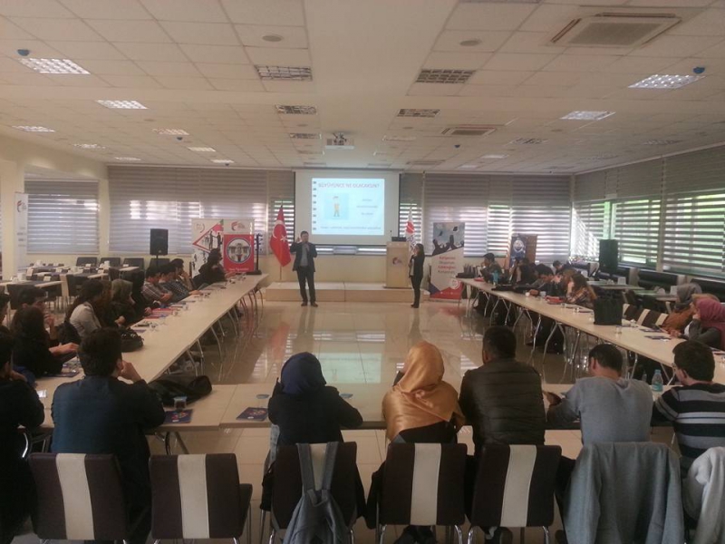 Kariyer, Girişimcilik ve Mesleki Test Merkezi Genel Koordinatörü Soner Örnekol ve Eğitim Koordinatörü Yağmur Özek’in gerçekleştirdiği sunumda kendini tanıma, kariyer planlama, iş hayatına hazırlık, sosyal medya, iş bulmada etkili yöntemler, CV hazırlama, mülakata hazırlık, başarılı görüşme faktörleri, iş hayatı ve iş hayatında kuşak farkı gibi konulara değinildi.