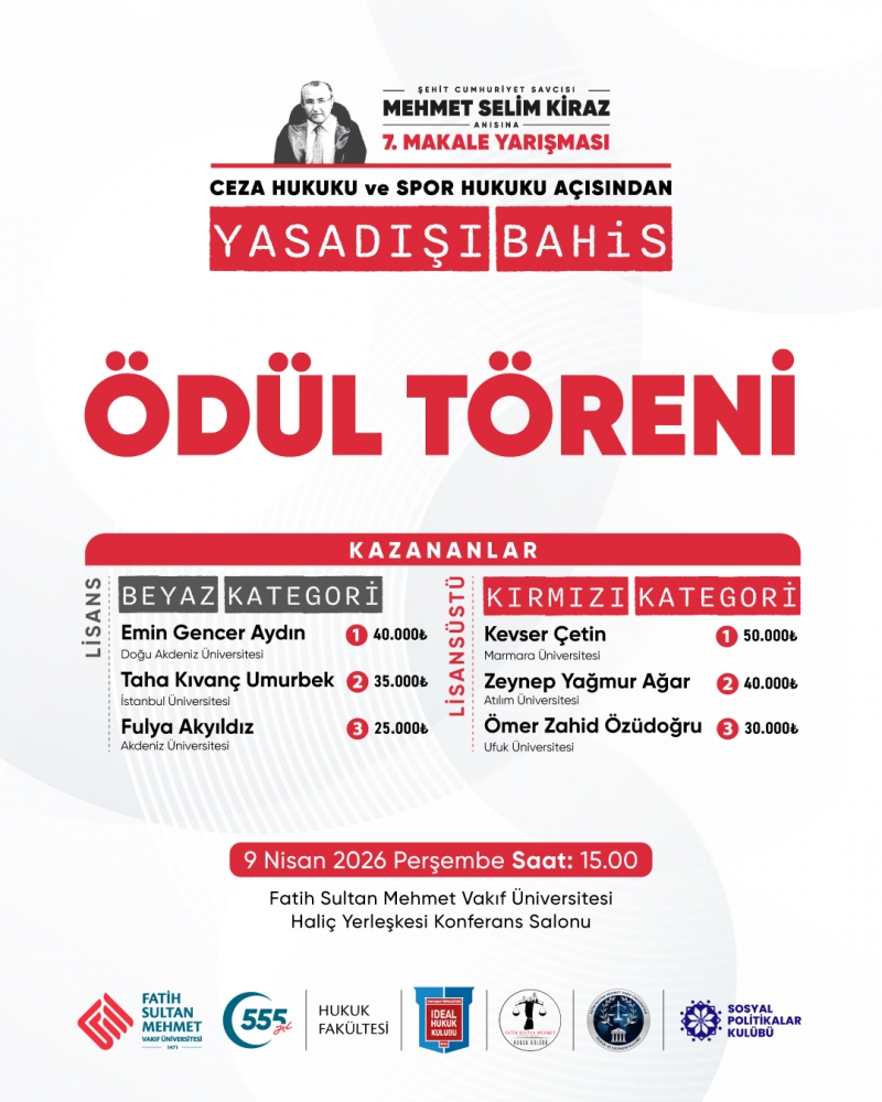 Şehit Cumhuriyet Savcısı Mehmet Selim Kiraz Anısına 7. Makale Yarışması Kazanan öğrencileri tebrik ederiz.